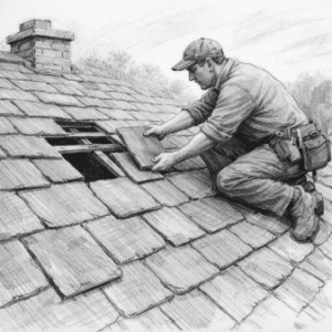Une tuile fissurée ou une ardoise cassée ça peut vite laisser passer l’eau. On remplace ce qu’il faut pour que la toiture reste bien étanche.